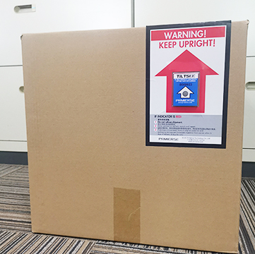 Tilt warning label correct placement: the best placement is the upper left or upper right corner of the goods.