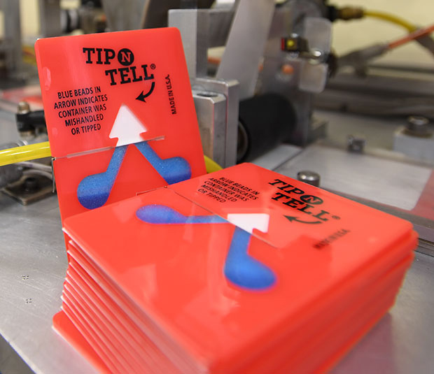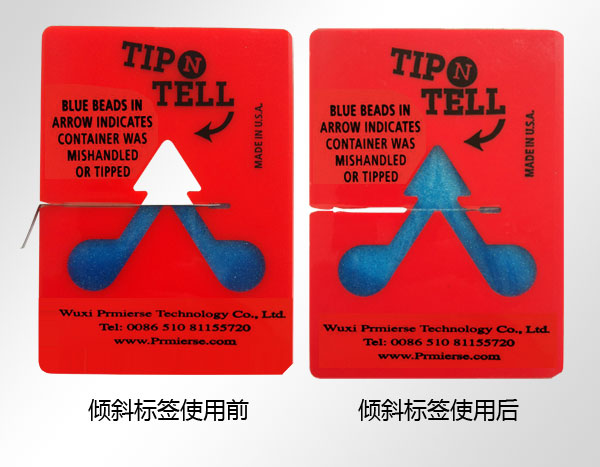 美國生產(chǎn)商制造的TIP N TELL產(chǎn)品,中文名為防傾貼標簽(以下簡稱),別名為傾斜標貼、傾斜顯示貼、傾斜感知器、防傾斜顯示器等。