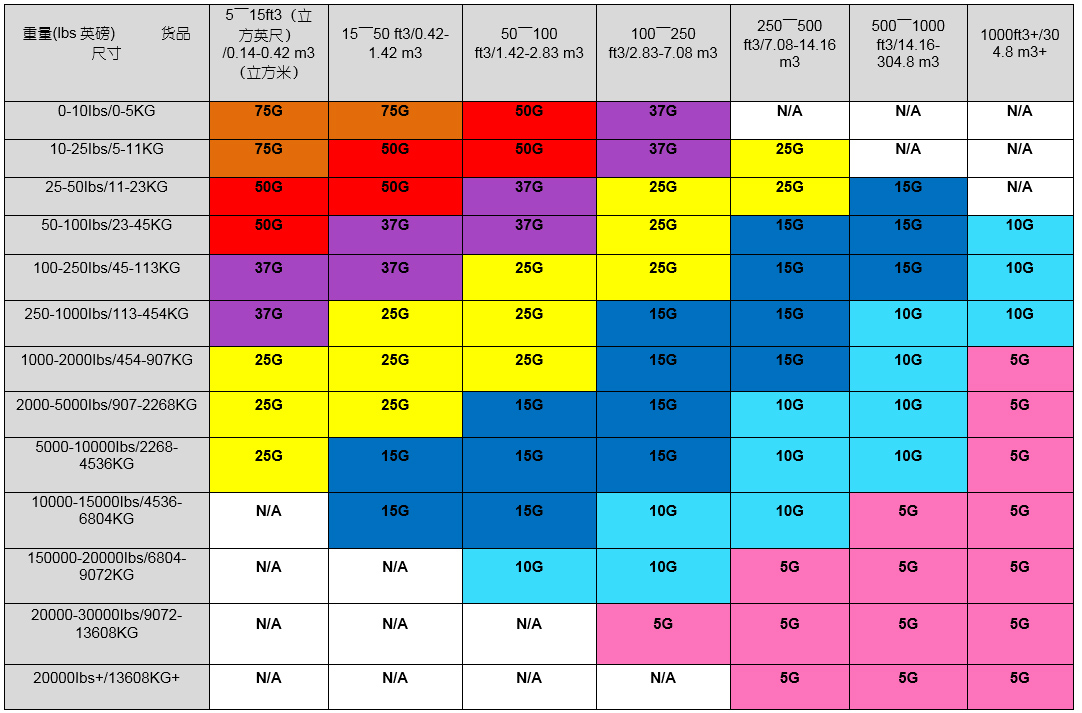 1英磅(Lbs)=0.4536KG 1立方英尺(cubic feet)=0.028立方米